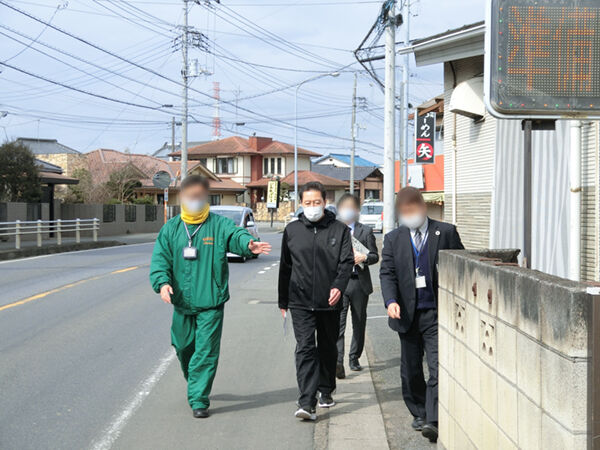 特に学務課長は通学路の注意するべきポイントを大変よく把握されており、朝夕の通学時間帯の交通量の状況や、外灯や道の明るさなど、さまざまな視点でレクを受けながら「この辺があぶないんじゃないか?」など注視しながら進みました。