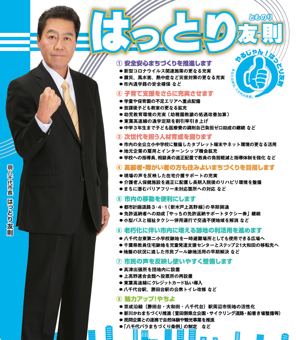 これからも市民の皆さんとともに、子育てしやすく、住み続けたい八千代を一歩ずつ実現してまいります。